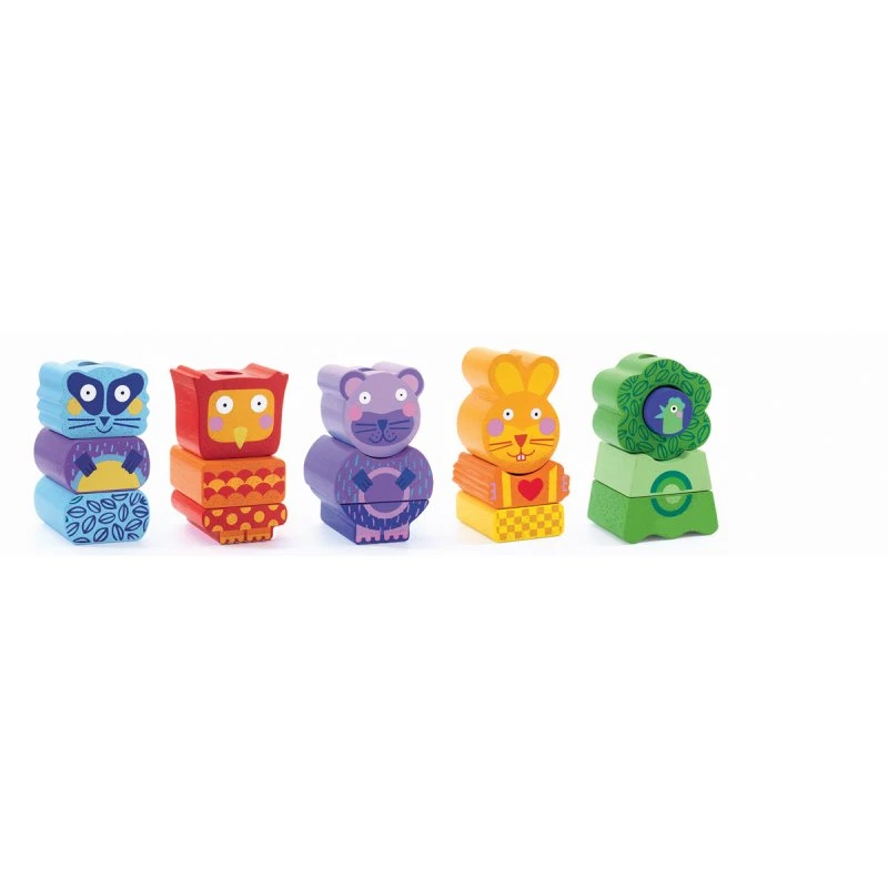 Un joli train en bois composé d’une locomotive et de 15 très jolies pièces en bois à empiler sur les wagons pour former des animaux passagers.